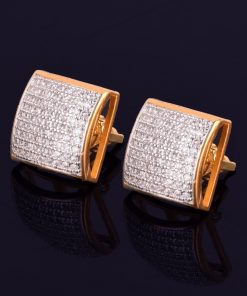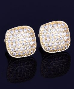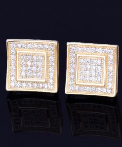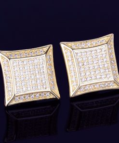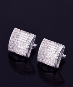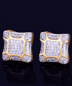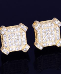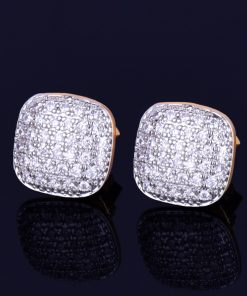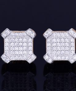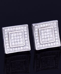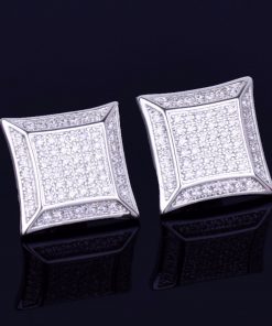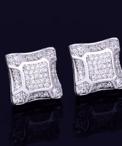 15mm Masonic Freemasonry Square Kite Micro Pave CZ Stud Earrings Gold Tone or White Gold Screw back